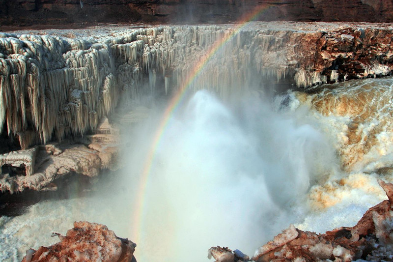 最佳季节:4月-5月和9月-11月最佳。4-5月称为“三月桃花汛”,9-11月叫做“壶口秋风”。这两个时期,水大而稳,瀑布宽度可达千米左右。主瀑难以接近,但远远望去,烟波浩淼,威武雄壮。大浪卷着水泡,奔腾咆哮,以翻江倒海之势,飞流而下。真是“水底有龙掀巨浪,岸旁无雨挂彩虹。”此情此景,实非笔墨所能形容。数九寒冬,壶口瀑布又换上了一派银装玉砌的景象,在那瑰丽的冰瀑面上,涌下清凉的河水,瀑布周围的石壁上,挂满了长短粗细不一的冰滴溜,配上河中翻滚的碧浪,更显示出一幅北国特有的自然风光
